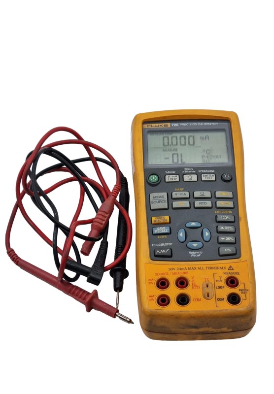 This Fluke 726 Precision Multifunction Calibrator is a versatile and reliable multimeter that has been well-used but is still in working condition. It comes with a protective case and cables, allowing you to perform a variety of electrical measurements and calibrations with confidence.