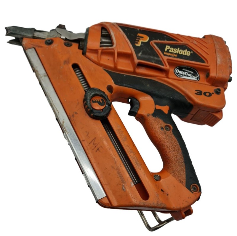 This PASLODE Framemaster-Li Impulse Framing Nailer is a powerful cordless nail gun designed for professional-grade framing and construction tasks. Featuring an air-powered mechanism, this tool delivers reliable and consistent nail driving performance without the hassle of a power cord. While it is a pre-owned item, it remains in good working condition after being well-used.