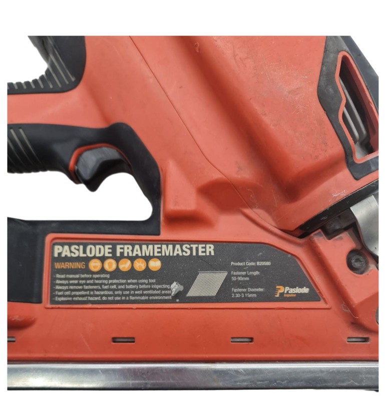 This PASLODE FRAMER nail gun is a robust and reliable power tool designed for professional-grade framing and construction tasks. With its durable construction and powerful performance, it delivers consistent and efficient nail driving, making it a valuable asset for any tradesperson. The tool's ergonomic design ensures comfortable and controlled operation, even during extended use. Whether you're tackling large-scale projects or need a dependable nail gun for your workshop, this PASLODE model is an excellent choice.
