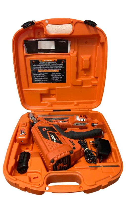 This powerful Paslode Impulse B20543 nail gun is a reliable cordless tool that delivers impressive performance. With its robust construction and intuitive design, it's an excellent choice for a variety of DIY and professional projects. The included case, charger, and two batteries provide convenience and versatility, ensuring you're always ready to tackle the task at hand. This nail gun has been well-maintained and shows minimal signs of wear, making it a great value for your money.
