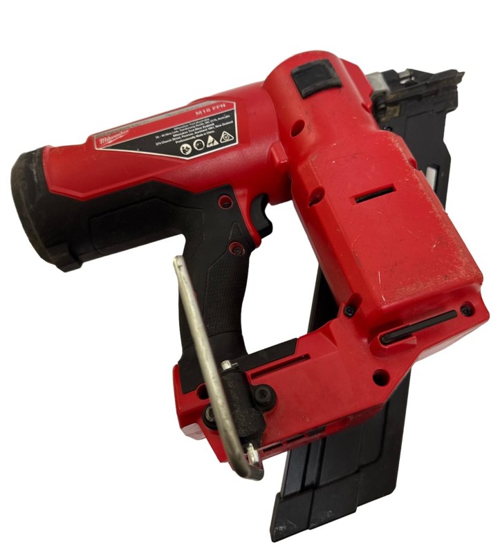 This Milwaukee M18 FFN cordless nail gun is a versatile power tool designed for a variety of construction and DIY projects. With its 18V battery, it provides the power and runtime needed for demanding tasks. While it has been used and shows some minor scratches, it remains in good working condition and ready to tackle your next job.