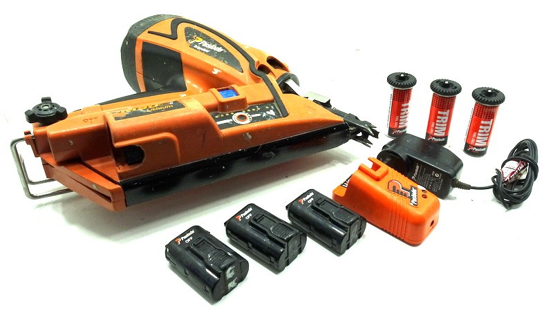 This Paslode IM90Ci Framing gun is a reliable power tool for a variety of construction and DIY projects. With its cordless design, you can work efficiently without the hassle of cords. The included batteries, charger, and gas canister ensure you have everything needed to get the job done. Although this nail gun has been well used, it remains in working condition, ready to assist with your next project.