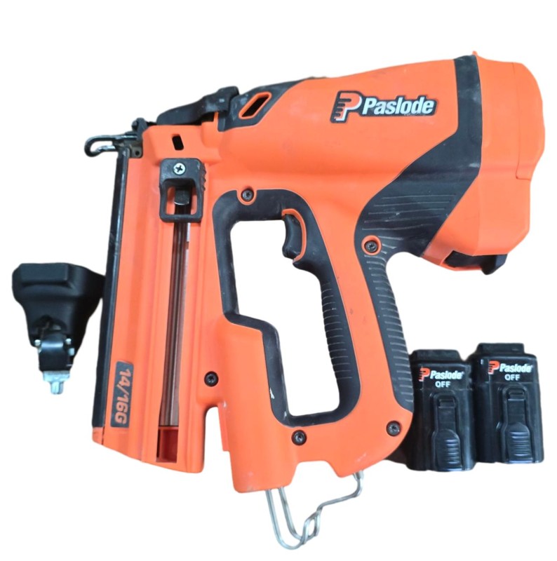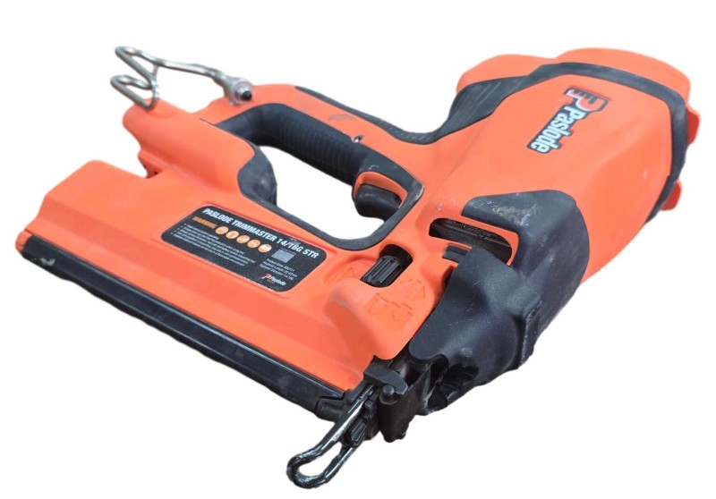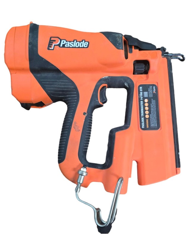 This PASODE TrimMaster Straight 14/16G nail gun is a versatile power tool designed for a range of trimming and fastening tasks. With its compact and lightweight design, it offers excellent control and manoeuvrability. The nail gun features a straight magazine for easy access in tight spaces, and it is compatible with 14 and 16 gauge nails. Included with this secondhand unit are a carrying case, 3 gas canisters, 2 batteries, and a charger.