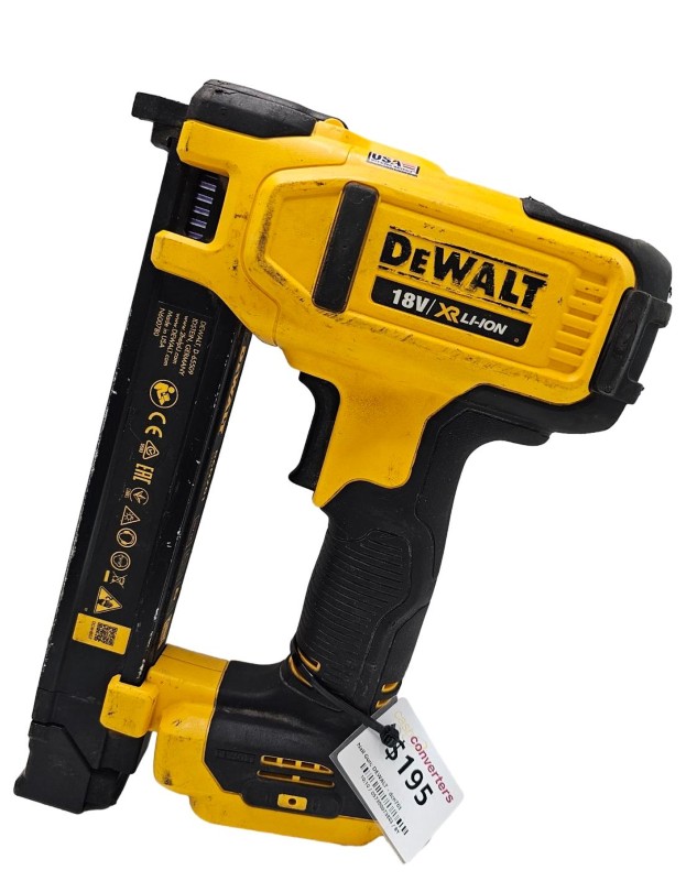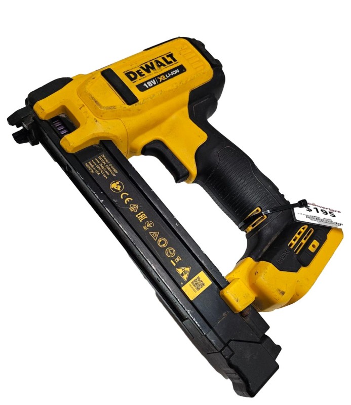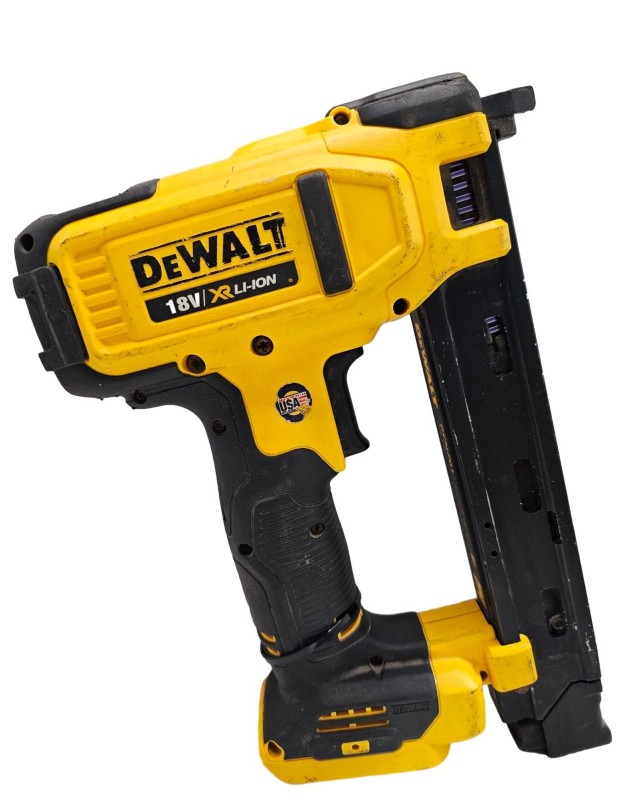 This DEWALT dcn701 cordless nail gun is a versatile power tool ideal for a range of construction and DIY projects. Powered by an 18V battery, it offers the freedom of cordless operation without sacrificing power or performance. Though well-used, this nail gun remains in working condition and ready to tackle your next job with ease.