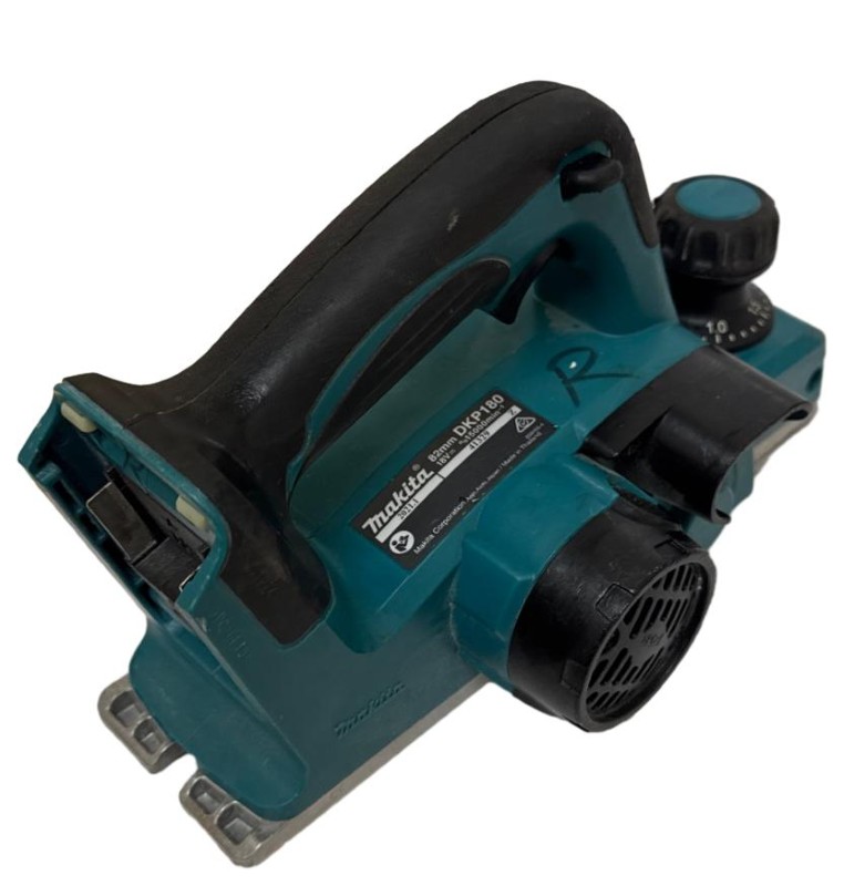 This Makita DKP180 18V cordless planer is a versatile power tool that delivers impressive performance. Designed for efficient woodworking, it features a compact and ergonomic design, allowing for easy handling and manoeuvrability. With its cordless operation, you can enjoy the freedom of mobility without being tethered to a power source. This planer is in good condition, with only minor signs of wear, and has a handwritten "R" in black marker on it.