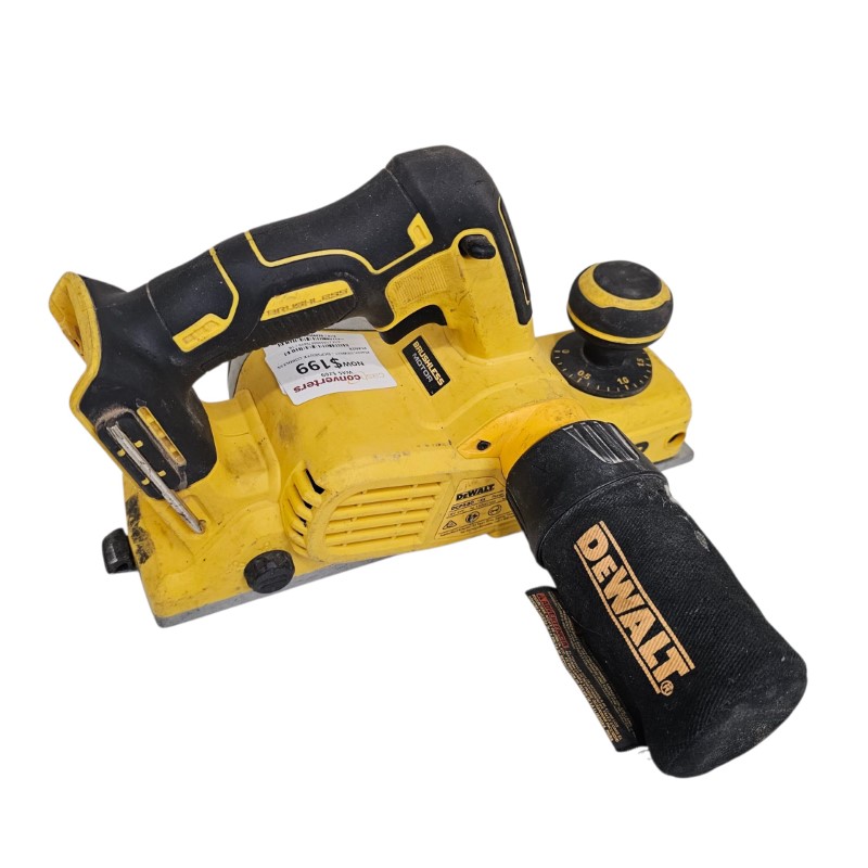 This DEWALT CORDLESS PLANER is a versatile power tool designed for a range of woodworking tasks. With its cordless operation, it offers the freedom to work in any location without the constraints of a power cord. The planer features a robust construction and a powerful motor, making it capable of smoothing and leveling a variety of wood surfaces with ease. Its compact and lightweight design ensures comfortable and efficient use, allowing you to tackle projects with precision and control.