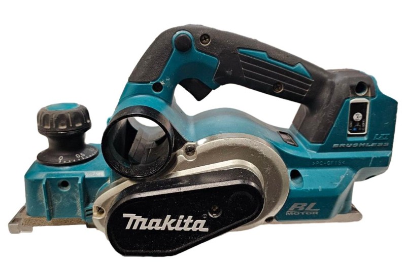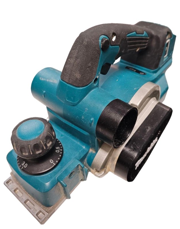 This powerful Makita DKP181 18V cordless planer is a versatile tool for woodworking projects. Its compact and lightweight design makes it easy to maneuver, while the 82mm planing width allows you to tackle a variety of materials. The brushless motor delivers efficient performance, and the depth adjustment knob provides precise control over the planing depth. This secondhand planer has been well used but remains in working condition, ready to take on your next DIY or construction task.