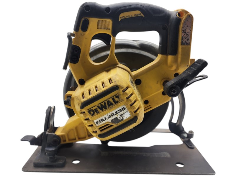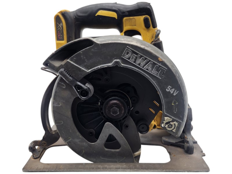 This powerful DEWALT DCS575 54V Circular Saw is a cordless power tool that delivers exceptional performance for your woodworking and construction projects. With a 54V voltage, it provides ample power and runtime to tackle a variety of tasks. Although it does not come with a case, this saw is functional and ready to use, despite showing signs of heavy wear from previous use.
