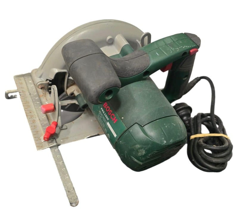 This robust and reliable BOSCH PKS 1500 circular saw is a powerful tool that can handle a variety of woodworking tasks. With its 18V voltage, it provides ample power to make clean, precise cuts. Though it has been well used, this saw remains in working condition and is ready to take on your next project.