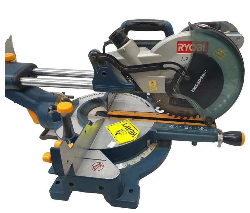This Ryobi EMS2026SCL drop saw is a reliable power tool that has been well-used, making it a practical choice for your DIY or trade projects. With its powerful motor and precise cutting capabilities, this saw can handle a variety of materials with ease. While it is missing the dust bag, the saw remains in working condition and ready to tackle your next task.