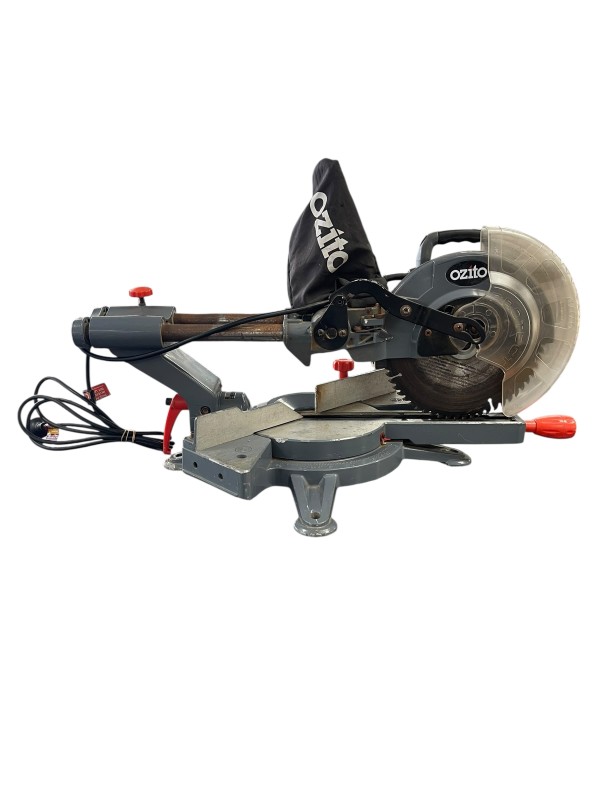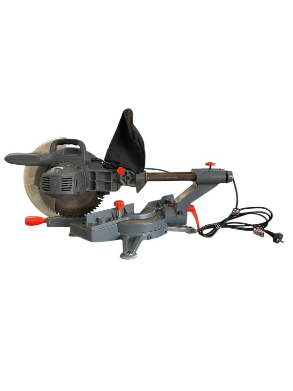This OZITO OZSCMS1600WA drop saw is a reliable power tool that has been well-used but remains in working condition. It is a versatile saw suitable for a variety of cutting tasks. With its robust construction and powerful motor, this drop saw can handle demanding projects with ease.