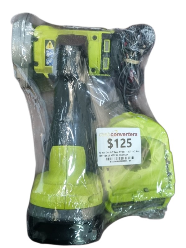 This robust RYOBI RCT18C metal cut-off saw is a versatile power tool perfect for a range of cutting tasks. Featuring a powerful motor and durable metal construction, it delivers reliable performance for DIY projects and light-duty industrial applications. Includes a rechargeable battery and charger for cordless convenience.