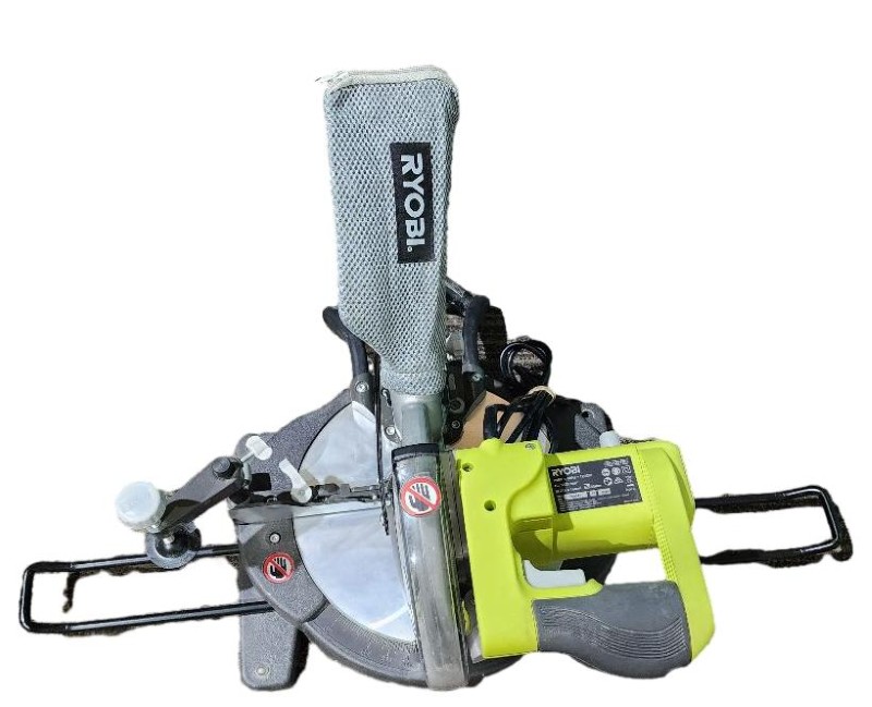 This robust Ryobi EMS1221RG 1200W 210mm Compound Mitre Saw is a versatile power tool ideal for a range of woodworking projects. With its powerful 1200W motor, it delivers precise and clean cuts across a variety of materials. The compound mitre function allows for accurate angled cuts, while the laser guide ensures straight, consistent lines. This saw has been well used but remains in working condition, ready to tackle your next DIY or renovation task.