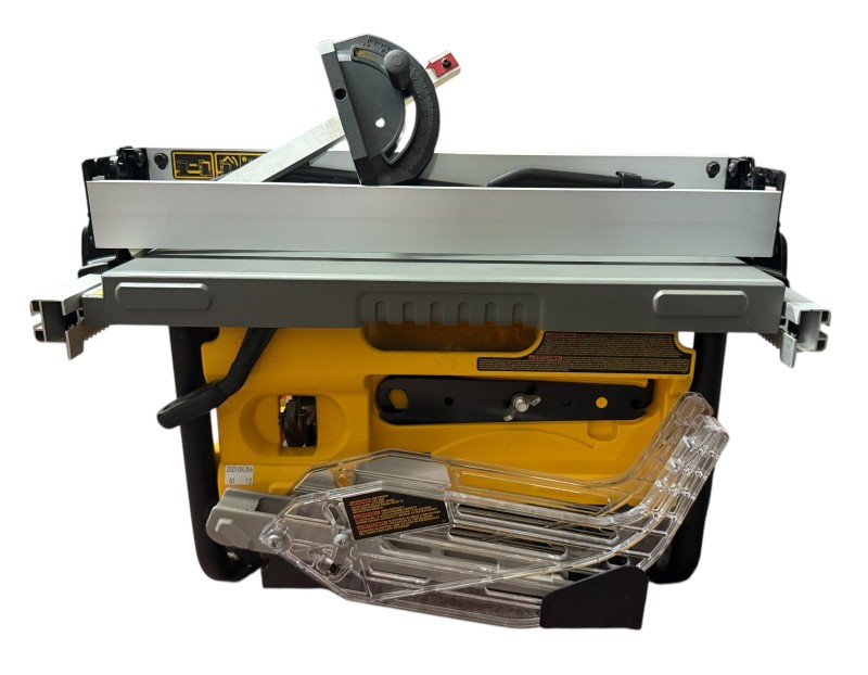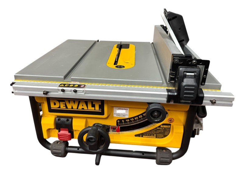 This DeWalt DW745-XE table saw is a versatile power tool that can handle a wide range of woodworking tasks with ease. Its compact and portable design makes it an excellent choice for both professional workshops and home DIY projects. The saw features a robust 1,850-watt motor that delivers impressive cutting power, while the large table and fence system provide stability and precision for accurate cuts. The included angle guide and allen wrench ensure you have the necessary accessories to set up and use the saw effectively.