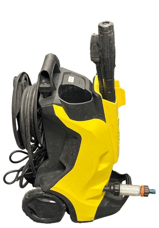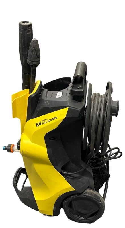 This Karcher K4 Premium Full Control pressure cleaner is a versatile and powerful tool for tackling a variety of cleaning tasks. With 3 x attachments included, you can efficiently clean surfaces such as patios, cars, and outdoor furniture. Despite its well-used condition, this pressure cleaner remains in working order and ready to take on your cleaning needs.