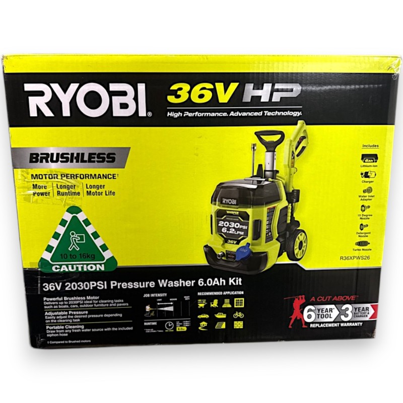 This powerful RYOBI 36V pressure cleaner is an excellent choice for tackling a wide range of cleaning tasks around the home and garden. With a robust 36V motor, it delivers impressive cleaning performance to blast away dirt, grime, and stubborn stains. Featuring a compact and lightweight design, it's easy to maneuver and store when not in use. Includes a battery, charger, and accessories, making it ready to use straight out of the box.