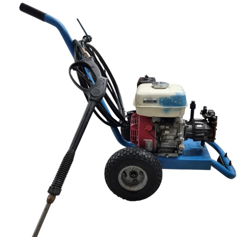This Honda GX160 pressure cleaner is a reliable and powerful tool for tackling a variety of cleaning tasks. With its robust GX160 engine, it delivers impressive cleaning performance, making it ideal for outdoor use, vehicle washing, and more. The included pressure hose and hose gun provide the necessary accessories to get the job done efficiently. This unit has been well-used but remains in working condition, ready to take on your next cleaning project.