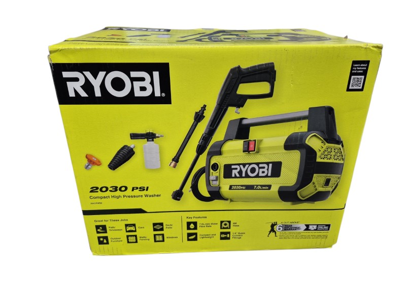 This powerful Ryobi 2030 PSI Compact High Pressure Washer is perfect for tackling a variety of cleaning tasks around the home and garden. With its 2030 PSI of pressure, it can easily remove stubborn dirt, grime, and mildew from surfaces like patios, driveways, and outdoor furniture. Its compact design makes it easy to store and transport, while the included accessories ensure you have everything you need for a thorough clean.
