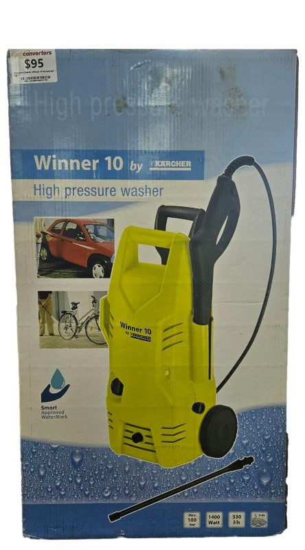 This powerful Winner 10 by Karcher pressure cleaner is a versatile and efficient tool for a range of cleaning tasks. With its robust design and reliable performance, it can tackle even the toughest dirt and grime with ease. Whether you're cleaning your car, patio, or outdoor surfaces, this pressure cleaner delivers impressive cleaning power to get the job done quickly and effectively.