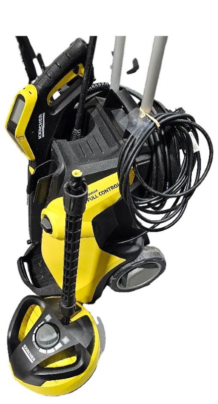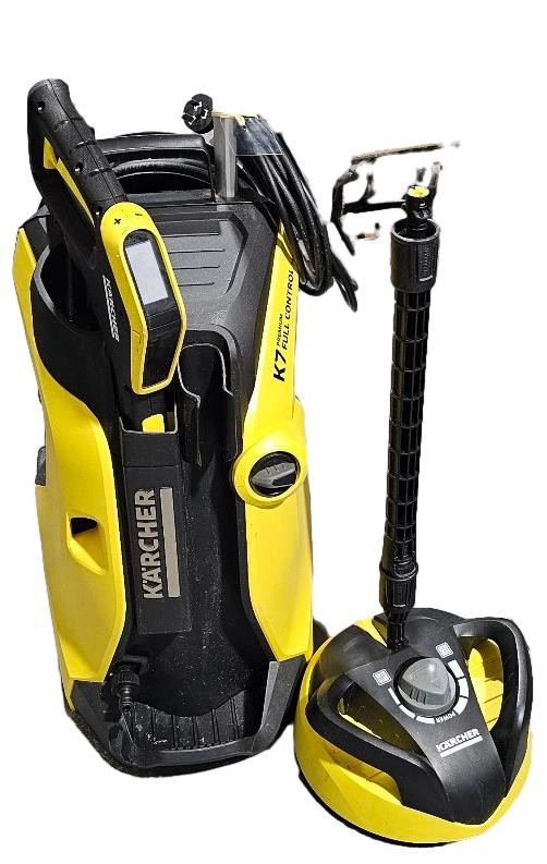 This powerful KARCHER K 7 PREMIUM FULL CONTROL PLUS pressure cleaner is an efficient and versatile tool for a range of cleaning tasks. With its high-pressure performance and intuitive controls, it delivers outstanding cleaning results on surfaces like patios, cars, and outdoor furniture. The machine features a Total Stop System that automatically shuts off the pump when the trigger is released, helping to conserve energy. Its robust design and easy-to-manoeuvre wheels make it a reliable and convenient choice for your cleaning needs.