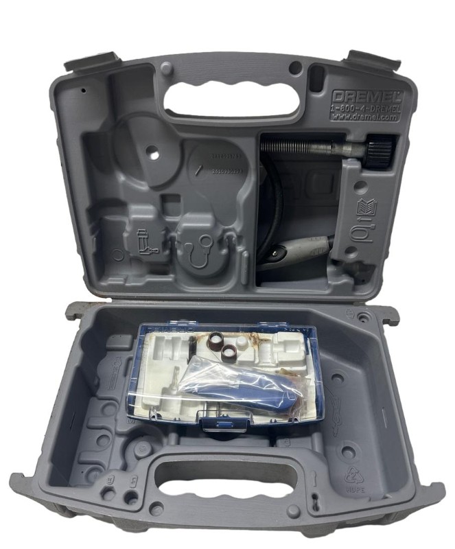 This Dremel 300 detail sander is a versatile power tool that can tackle a variety of sanding and finishing tasks. With its compact size and ergonomic design, it offers excellent control and precision for detailed work. The included case, attachments, and sanding bits provide the necessary accessories to get the job done efficiently. While this unit has been well used, it remains in working condition, making it a practical choice for DIY projects or light workshop use.
