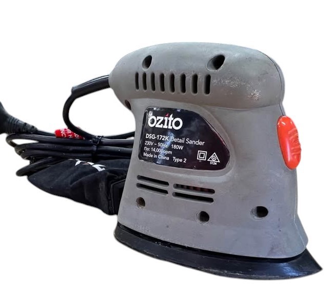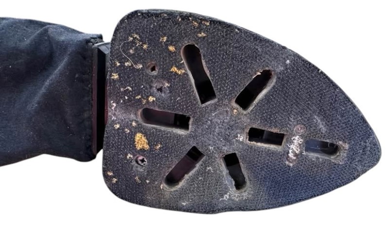 The detail sander shows usage with no signs of damage to the pad and overall functionality has been tested.