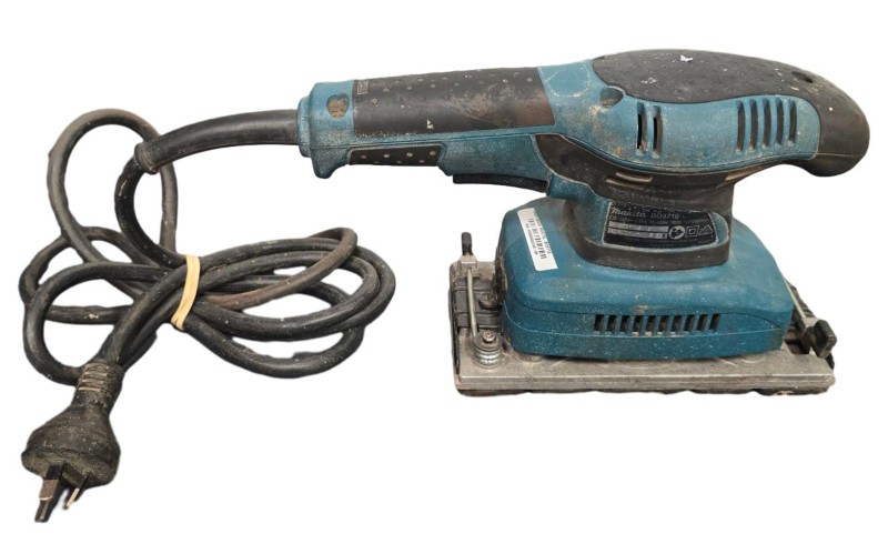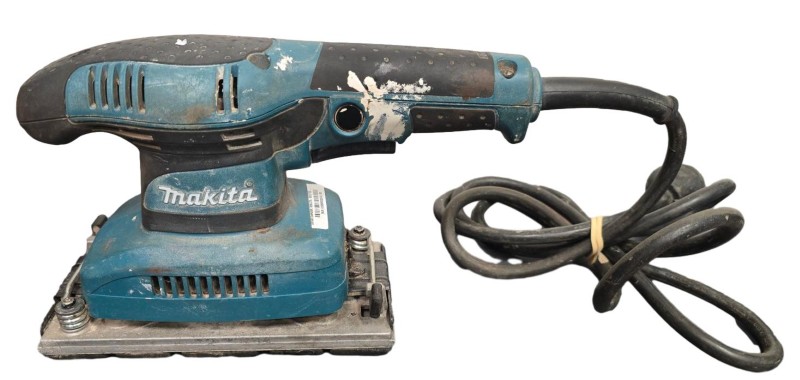 This MAKITA BO3710 detail sander is a reliable power tool that has been well-used but remains in working condition. Its compact design and versatile functionality make it a practical choice for a variety of sanding tasks. While it may not include the original case, this secondhand sander is a cost-effective option for those in need of a dependable power tool.