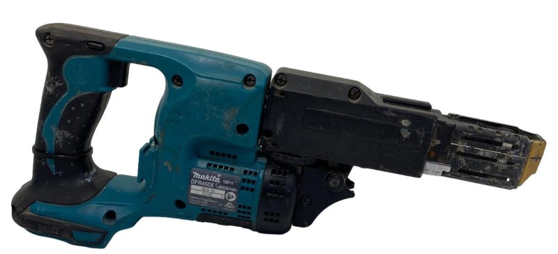 This powerful Makita DFR450X cordless screw gun is a reliable tool for a variety of construction and DIY projects. Featuring an 18V battery, this cordless screw gun offers convenient, cable-free operation. While it has been well-used and shows visible signs of heavy wear, it remains in working condition and is ready to tackle your next job.