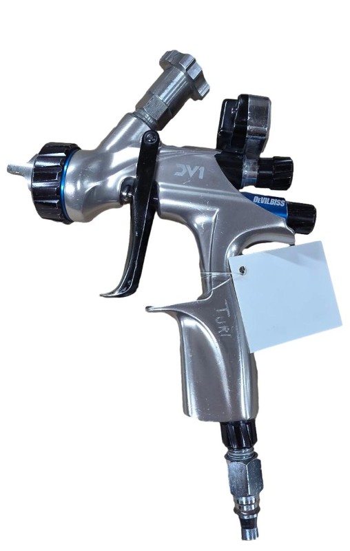 This DEVILBISS DV1 spray gun is a versatile power tool ideal for a variety of painting and finishing applications. Its robust construction ensures reliable performance, while the ergonomic design provides comfort and control during use. The spray gun delivers a consistent, high-quality finish, making it a valuable addition to any workshop or DIY project.