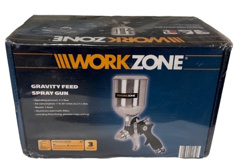 This WORKZONE GRAVITY FEED SPRAY GUN is an excellent secondhand power tool that will make your next project a breeze. Featuring a gravity feed design, this spray gun delivers a consistent, high-quality finish with ease. Its ergonomic grip and adjustable spray pattern ensure precise control and efficient application. Whether you're tackling a large-scale painting job or need a versatile tool for smaller tasks, this spray gun is a reliable and capable choice.