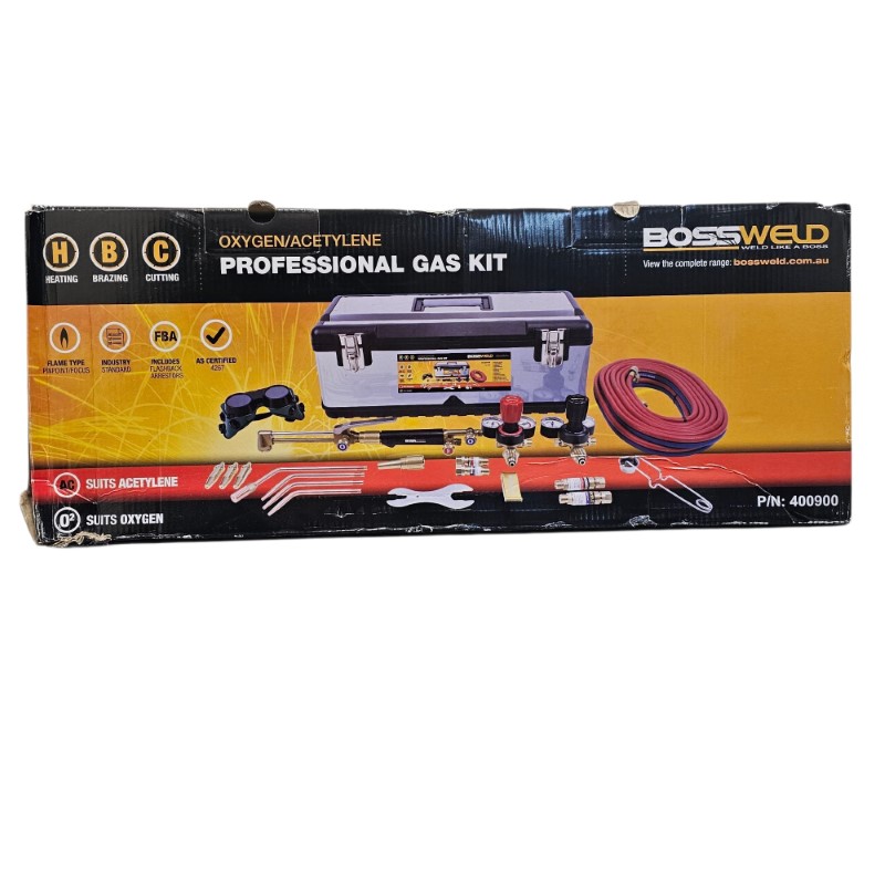 This professional Bossweld Oxygen/Acetylene Gas Kit is an essential tool for a wide range of welding and metalworking tasks. Featuring a sturdy and durable design, it delivers reliable performance and precision control. With its versatile capabilities, this gas welder is perfect for hobbyists, DIY enthusiasts, and professional tradespeople alike.