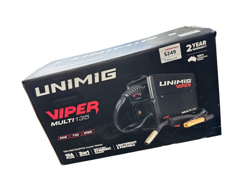 This UNIMIG MULTI135 VIPER 130A MIG welder is a versatile and powerful tool for professional welding tasks. Featuring a robust design, it delivers reliable performance and exceptional results. With a 130A output, it can handle a wide range of welding applications, making it a valuable asset in any workshop or job site.