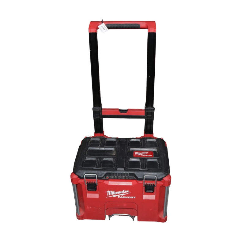 This MILWAUKEE PACKOUT tool box is a practical and durable storage solution for your workshop or jobsite. Crafted with a robust design, it features a sturdy construction that can withstand the demands of frequent use. The compact size makes it easy to transport, while the integrated handles provide a comfortable grip. This secondhand tool box is in good condition, with only minor signs of wear from previous use.