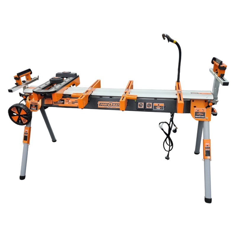 This portable miter saw stand and work centre from PORT-A-MATE provides a versatile and convenient workspace for your projects. The sturdy steel construction can support up to 300 lbs, making it a reliable choice for a variety of woodworking tasks. The adjustable height and folding design allow for easy transportation and storage when not in use. Whether you're tackling DIY jobs or professional work, this multifunctional workbench is a practical addition to your workshop.